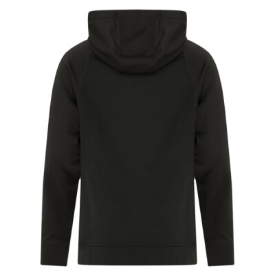 9.3-oz, 100% anti-static performance polyester fleece. 3-panel double lined contrast hood with no drawstring. Moisture wicking. Breathable. Flat lock seams. Classic fit . Due to the nature of polyester, special care must be taken throughout the decoration process. Please refer to product size spec PDF file for more details.