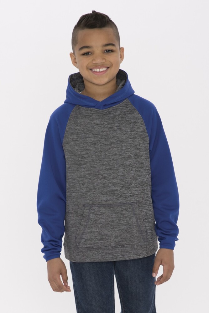 ATC DYNAMIC HEATHER FLEECE TWO TONE HOODED YOUTH SWEATSHIRT.